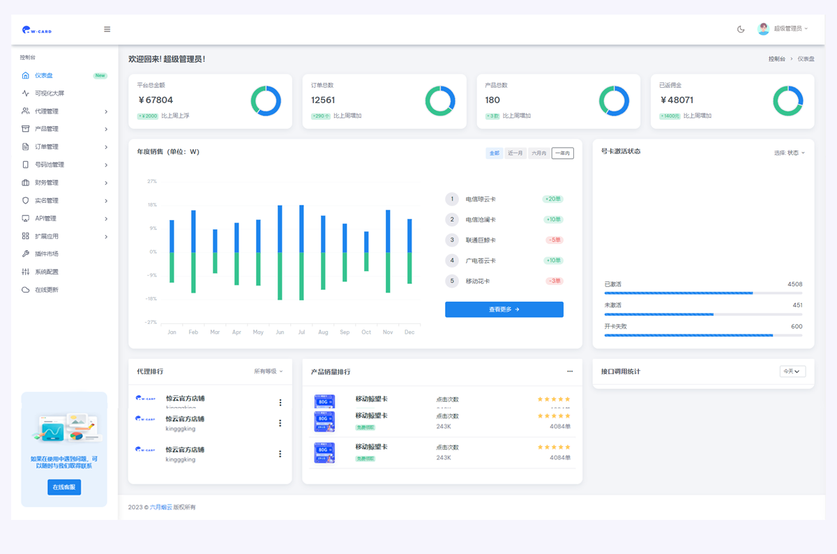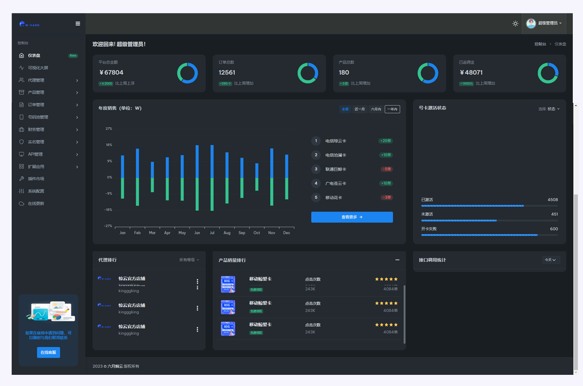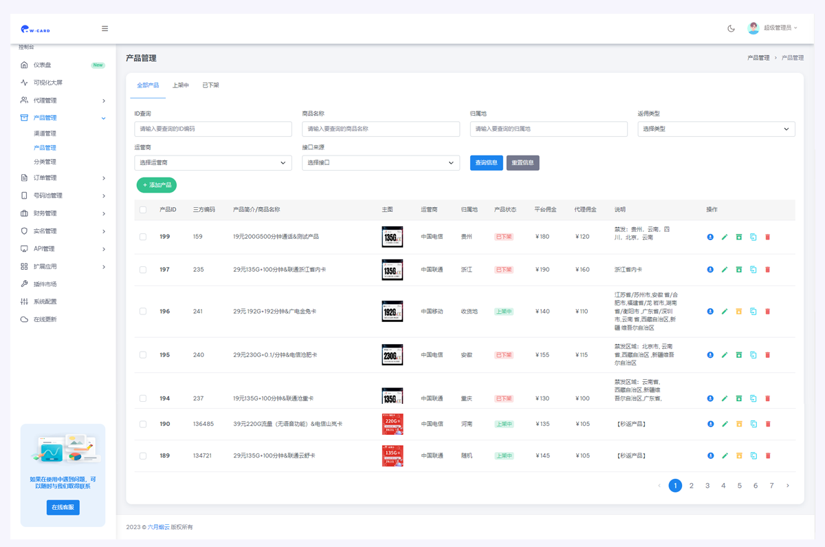 使用魔方号卡系统,轻松管理代理商品,对接上下游,对接运营商!